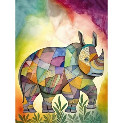 Artery8 Rhinoceros Pastel Colour Portrait Folk Art Large Wall Poster Print Thick Paper 18X24 Inch