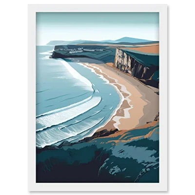 Artery8 Rhossili Bay Cliffs Over Beach Coastal Landscape Artwork Framed Wall Art Print A4