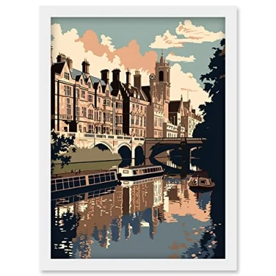 Artery8 River Cam and University of Cambridge Buildings Artwork Framed Wall Art Print A4