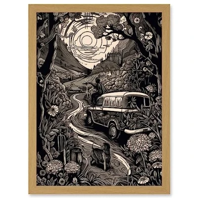 Artery8 Road Trip Stop by Countryside Forest Landscape Artwork Framed A3 Wall Art Print