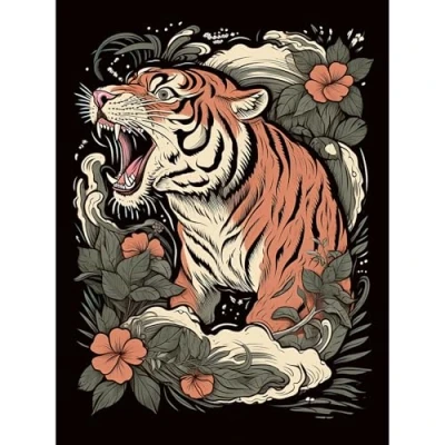 Artery8 Roaring Tiger Old School USA Tattoo Ink Body Art Rockabilly Americana 50s Large Wall Poster Print Thick Paper 18X24 Inch