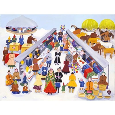 Artery8 Robbins Russian Country Fair 1944 Painting Premium Wall Art Canvas Print 18X24 Inch