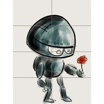 Artery8 Robot With Flower Illustration XL Giant Panel Poster (8 Sections)