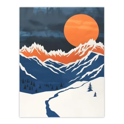 Artery8 Rocky Mountains Winter Landscape Modern Abstract Living Room Large Wall Art Poster Print Thick Paper 18X24 Inch