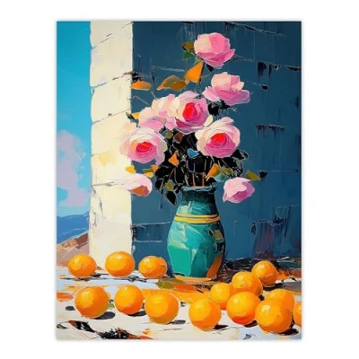Artery8 Rose Flower Bouquet Vase and Oranges Still Life Kitchen Extra Large XL Wall Art Poster Print