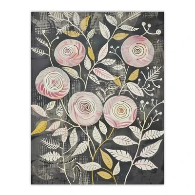 Artery8 Rose Flowers Pink Grey Folk Art Patterns Bedroom Extra Large XL Wall Poster Print