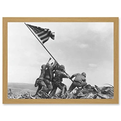 Artery8 Rosenthal Raising Flag Iwo Jima Iconic WWII Photo A4 Artwork Framed Wall Art Print