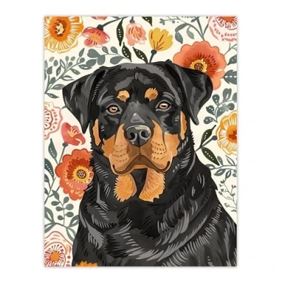 Artery8 Rottweiler Dog Lover Bright Floral Pet Portrait Living Room Extra Large XL Wall Art Poster Print