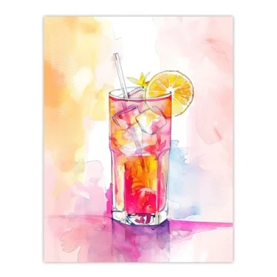Artery8 Rum Punch Cocktail Pink Orange Watercolour Kitchen Large Wall Art Poster Print Thick Paper 18X24 Inch