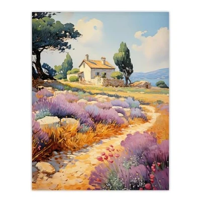 Artery8 Rural France Country House Watercolour Painting Extra Large XL Wall Art Poster Print