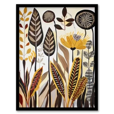 Artery8 Rustic Abstract Wildflowers Painting Folk Art Living Room Artwork Framed Wall Print A4