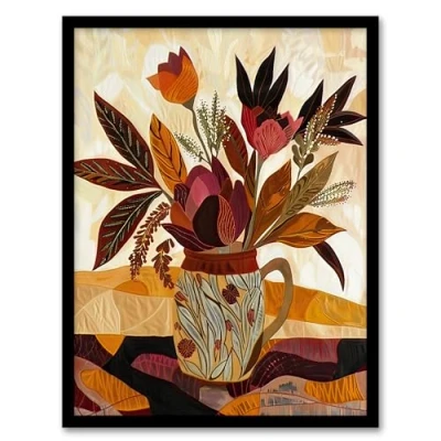 Artery8 Rustic Autumnal Flower Bouquet in Vase Painting Living Room Artwork Framed Wall Art Print A4