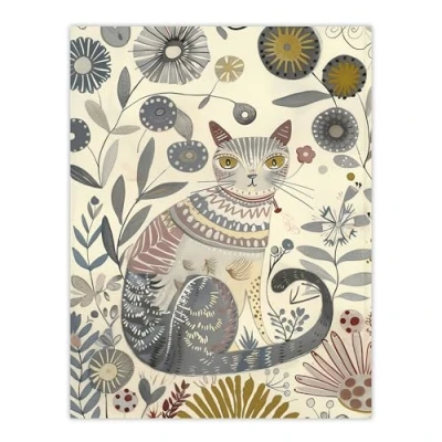 Artery8 Rustic Cat Wildflower Field Bright Floral Pattern Living Room Large Wall Art Poster Print Thick Paper 18X24 Inch