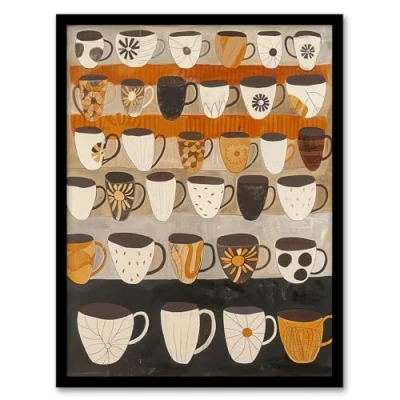 Artery8 Rustic Earthy Tea Coffee Mugs Folk Art Retro Kitchen Artwork Framed Wall Print 18X24 Inch