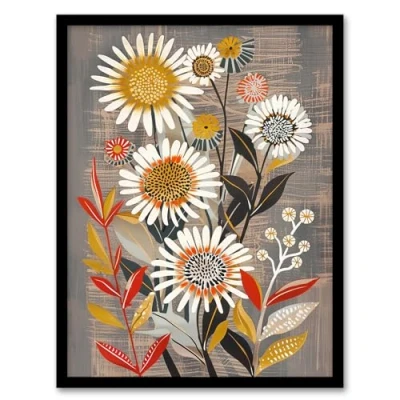 Artery8 Rustic Wildflower Painting Floral Autumn Folk Art Living Room Artwork Framed Wall Print A4
