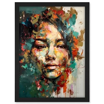 Artery8 Sad Young Woman Face Beauty Portrait Multicoloured Artwork Framed A3 Wall Art Print