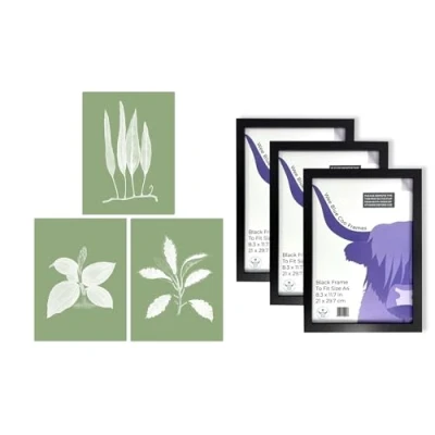 Framed Art Pack: This top-tier collection features 3 high quality, unframed wall art prints and 3 engineered wood frames. Each print is printed onto thick, luxurious art paper. Size: Each elegant piece is A4 sized and measures 29.7 x 21 cm (8.3 x 11.7 inches). Care & Quality: Please note that some assembly is required and that there may be some variation in the colour of the on-screen image and the actual item received. This is subject to the brightness and contrast of your screen settings. Versatility: These prints provide an aesthetic uplift to any space - be it living rooms, home offices, bedrooms, bathrooms, kitchens, and even B&Bs or traditional office environments. With our wide range of art styles from abstract to modern, classical, and more, there's something to cater to every art enthusiast's taste. Ideal Gift: Our art prints make a perfect, thoughtful gift for occasions like birthdays, Mothers Day, Christmas, Anniversary, or a housewarming present.