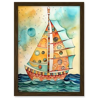 Artery8 Sailboat Concept With Dorsal Fin Sail Folk Art Artwork Framed A3 Wall Print