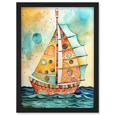 Artery8 Sailboat Concept With Dorsal Fin Sail Folk Art Artwork Framed Wall Print A4