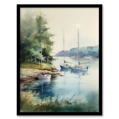 Artery8 Sailboat Watercolour Study River Thames 1967 Artwork Framed Wall Art Print A4