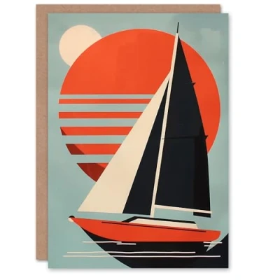 Artery8 Sailing Sail Boat Sun Moon Modern Minimalist Blank For Him Or Her Art Birthday Card