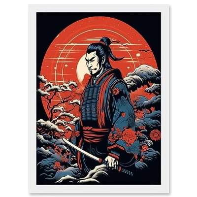 Artery8 Samurai Master in Winter Sunset Landscape Rockabilly Americana 50s Artwork Framed A3 Wall Art Print