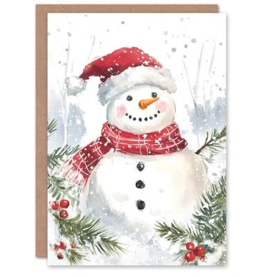 Artery8 Santa Hat Scarf Snowman Holly Blank For Him Or Her Art Xmas Festive Christmas Card