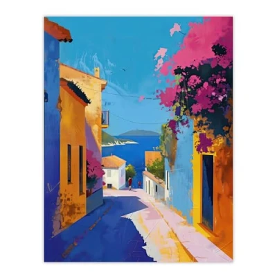 Artery8 Santorini Seaside Coastal Town Painting Colourful Bathroom Toilet Large Wall Art Poster Print Thick Paper 18X24 Inch
