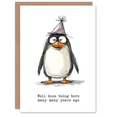Artery8 Sarcastic Penguin Well Done Born Many Years Ago Birthday Card
