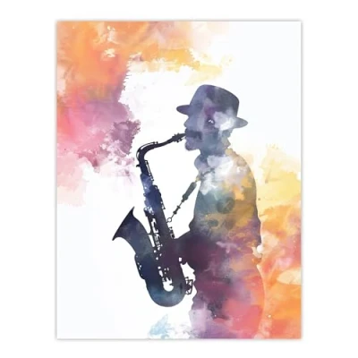 Artery8 Saxophone Jazz Musician Orange Purple Watercolour Living Room Large Wall Art Poster Print Thick Paper 18X24 Inch