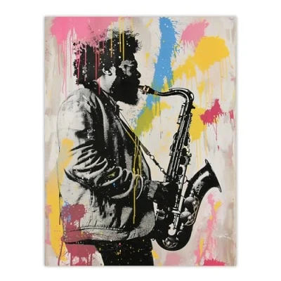 Artery8 Saxophone Player Portrait Paint Splash Street Art Living Room Extra Large XL Wall Poster Print