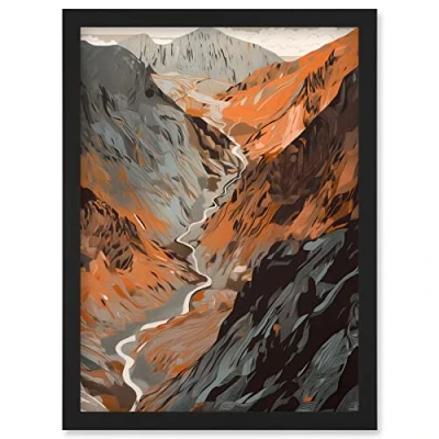 Artery8 Scaffel Pike Hiking Trail Rocky Mountain Landscape Artwork Framed Wall Art Print A4