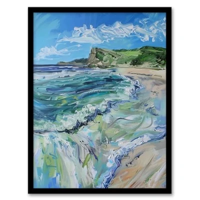 Artery8 Scarborough North Bay Abstract Coastal Landscape Bathroom Toilet Artwork Framed Wall Art Print A4