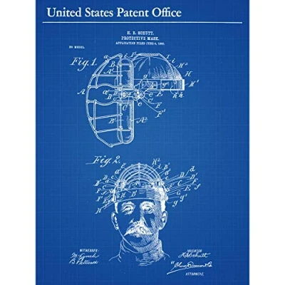 Artery8 Schutt Protective Face Mask 1904 Patent Plan Large Wall Art Poster Print Thick Paper 18X24 Inch