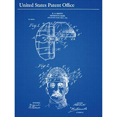 Artery8 Schutt Protective Face Mask 1904 Patent Plan Unframed Wall Art Print Poster Home Decor Premium