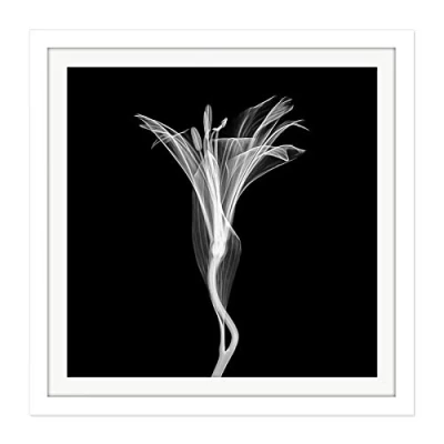 Artery8 Schwartz NJIT Greyscale Flower X Ray Transparent Photo Square Wooden Framed Wall Art Print Picture 16X16 Inch