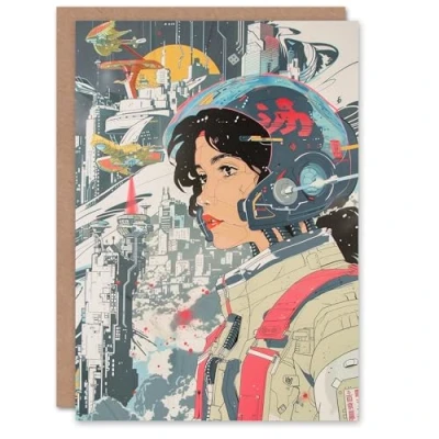 Artery8 Sci Fi Pilot Japanese Comic Book Style Futurism Blank For Him Or Her Art Birthday Card