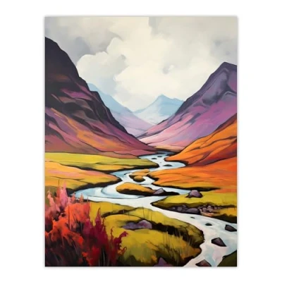 Artery8 Scotland Glencoe Valley Oil Painting Majestic Mountains And River With Heather Shrubs Large Wall Art Poster Print Thick Paper 18X24 Inch