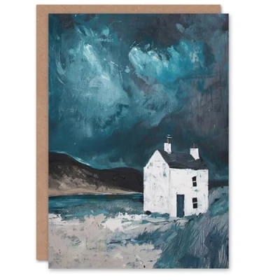 Artery8 Scottish Coastal Cottage Night Oil Painting Hills Greeting Birthday Card Him Her All Blank
