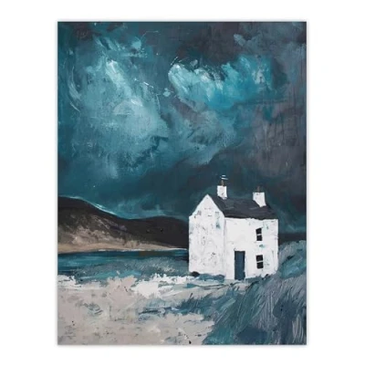Artery8 Scottish Coastal Cottage Night Oil Painting Hills Living Room Large Wall Art Poster Print Thick Paper 18X24 Inch