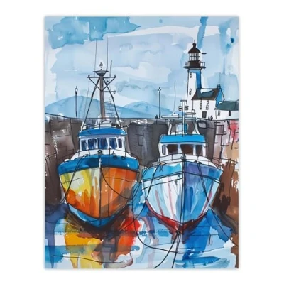 Artery8 Scottish Harbour Fishing Boats and Lighthouse Bathroom Toilet Extra Large XL Wall Art Poster Print