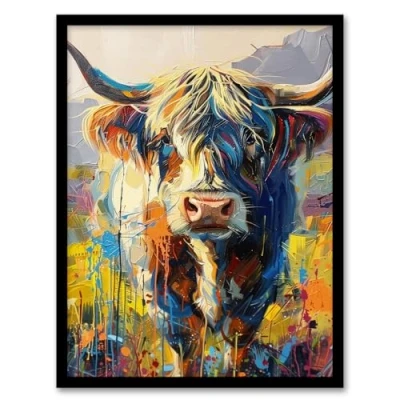 Artery8 Scottish Highland Cow Hairy Coo Abstract Painting For Living Room Artwork Framed Wall Art Print A4