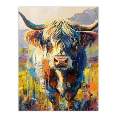Artery8 Scottish Highland Cow Hairy Coo Abstract Painting For Living Room Large Wall Art Poster Print Thick Paper 18X24 Inch