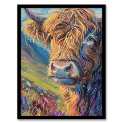 Artery8 Scottish Highland Cow Hairy Coo Oil Painting For Living Room Artwork Framed Wall Art Print A4