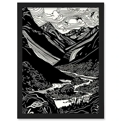 Artery8 Scottish Highlands Mountain River Modern Landscape Artwork Framed A3 Wall Art Print