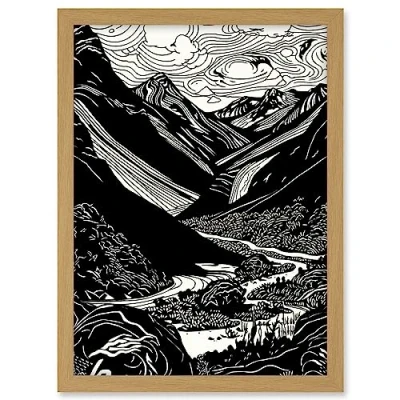 Artery8 Scottish Highlands Mountain River Modern Landscape Artwork Framed A3 Wall Art Print