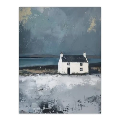 Artery8 Scottish Lochside Farmhouse Oil Painting Shore Living Room Extra Large XL Wall Art Poster Print
