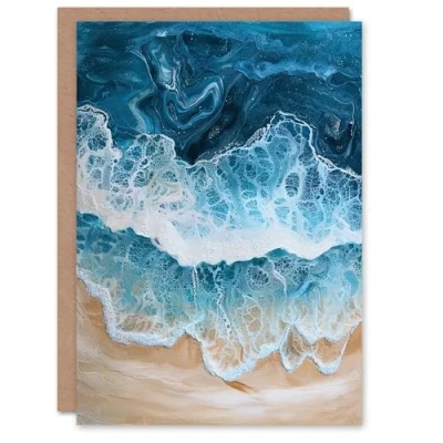 Artery8 Sea Foam on Sandy Beach From Above Calm Zen Greeting Birthday Card Him Her All Blank