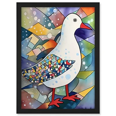Artery8 Seagull Bird And Snowflakes Folk Art Artwork Framed A3 Wall Print