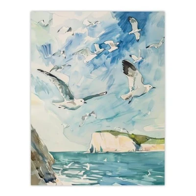 Artery8 Seagulls Over White Cliffs of Dover UK Coastline Living Room Large Wall Art Poster Print Thick Paper 18X24 Inch
